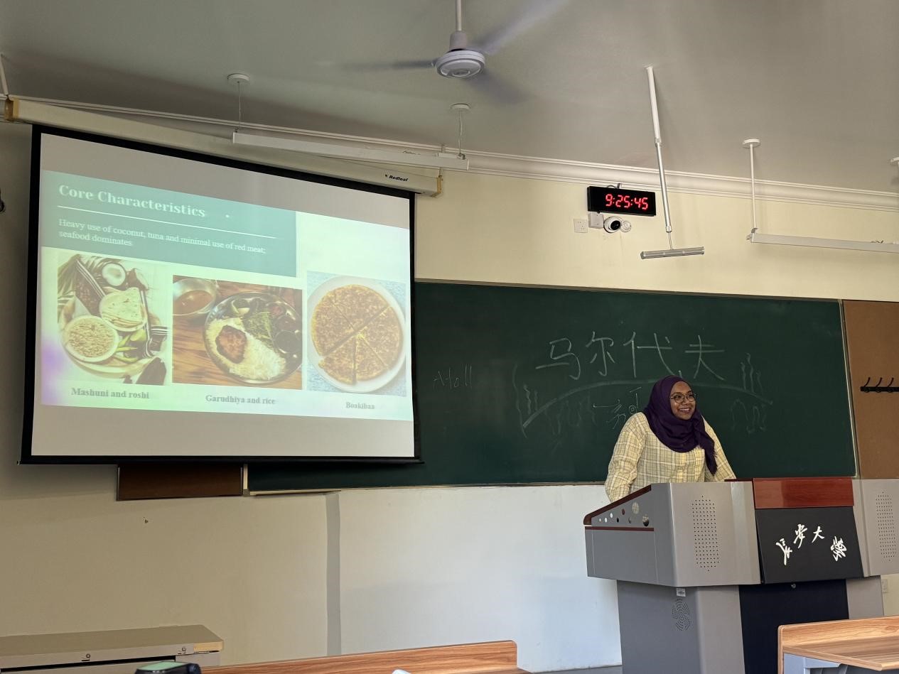 近日,来自马尔代夫维拉公司的中文教师阿米拉作为主讲人,以丰富的知识储备与生动的讲述,为国际中文教育班的同学带来了一场别开生面的交流盛宴。