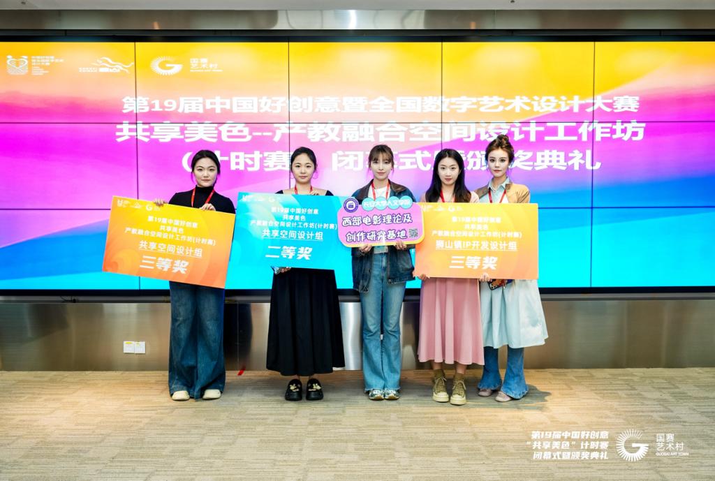 4月13日第十九届中国好创意共享美色产教融合空间设计工作坊(计时赛)在广东省佛山市狮山镇落下帷幕。在教师邹韵婕、侯婧、韩雪指导下,公司2024级戏剧影视硕士生杨子凡、陶润福、王婧瑶及2022级戏剧影视文学专业本科生张嘉益组成的员工团队,经过48小时高强度创作,从全国1000多名参赛师生中脱颖而出,荣获国家二等奖1项、国家三等奖2项。