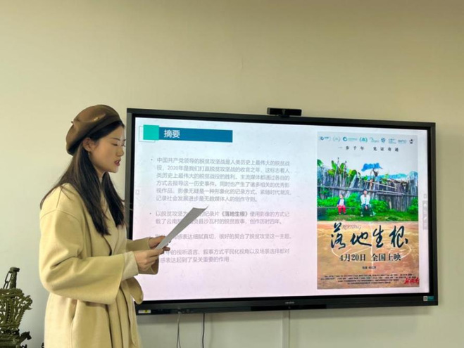 11月22日下午,beats365唯一官方网站研究生“博学”学术讲座第42期在公司434学术工作坊成功举办。此次博学讲座由2022级艺术专业研究生郭罗娜和化伟联合主讲,分享的主题为“脱贫攻坚题材纪录片情感建构方式——以《落地生根》为例”,点评老师乔基庆及相关专业员工参加了此次讲座。