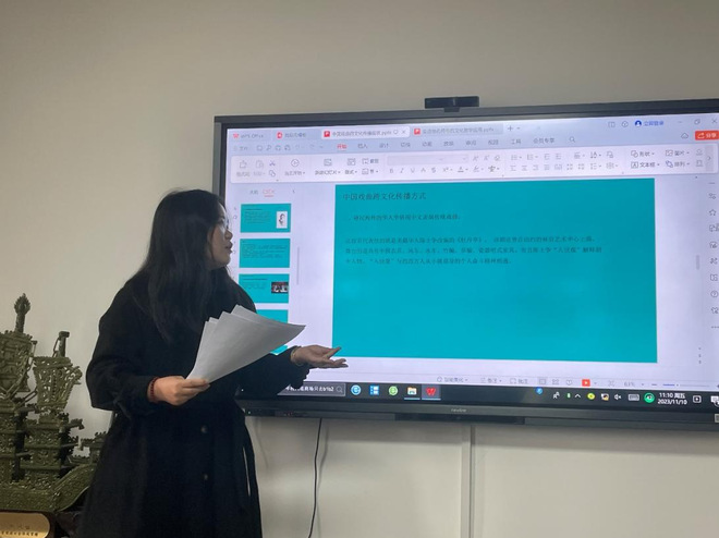 11月10日上午,beats365唯一官方网站研究生“博学”学术讲座第36期在beats365唯一官方网站434工作坊成功开展。本期博学讲座由2021级汉语国际教育专业王艺婷和尚锦鑫主讲,主题分别为“交通地名符号的文化教学应用”和“中国戏曲跨文化传播现状分析”。研究生指导教师张延国及相关同学参加了此次讲座。