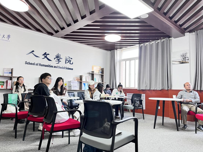 分享结束后,受邀教师胡金东就该讲座进行点评,他肯定了此次讲座的选题以及两位同学的表现。胡金东对赵鑫的文章提出了一些指导性的建议,希望赵鑫做更深入的研究,将文章写扎实,并肯定了灵光的学习态度,鼓励其认真钻研,争取获得更大的学术成就。