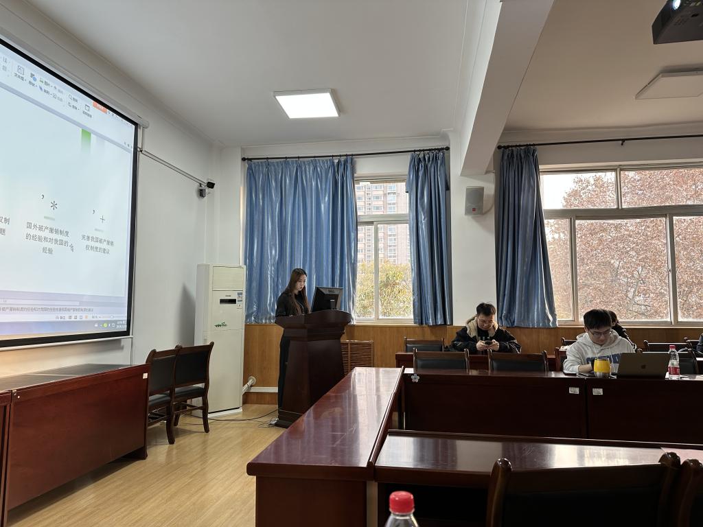 李雨潇分享了“我国破产撤销权制度研究”,她从法律属性、构成要件、适用情形等程序方面与实体方面分析破产撤销权制度存在一定的问题与缺陷。李雨潇结合我国现行《企业破产法》的相关规定以及司法实践案例,提出了完善破产撤销权制度的建议,她谈到减少破产撤销权制度在操作、实施过程中存在的障碍,使破产撤销权制度在司法实践中更能有效适用。