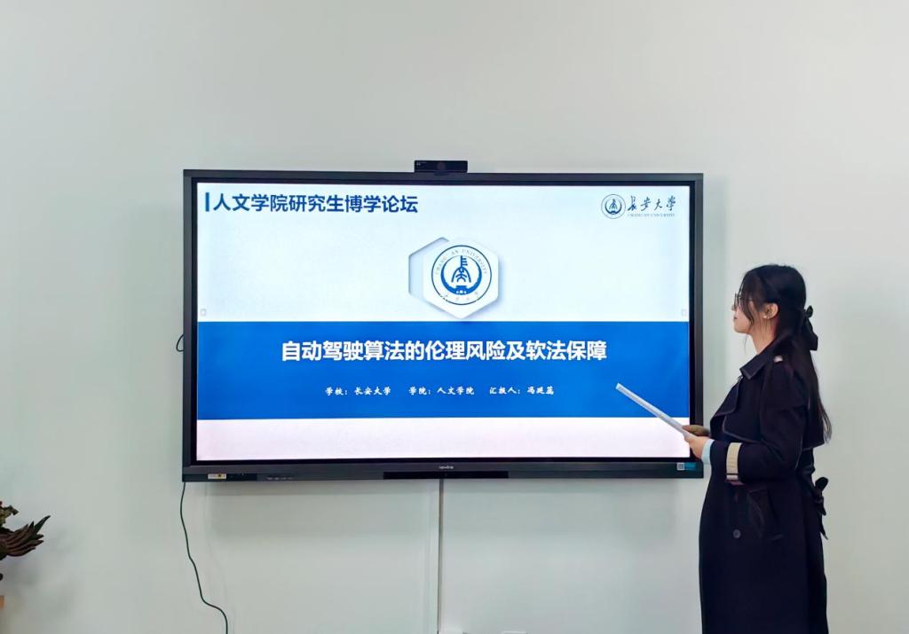 冯延蕊以“自动驾驶算法的伦理困境及软法保障”为题展开分享。她围绕自动驾驶汽车的特性,介绍了自动驾驶算法存在生命权两难抉择、数据安全隐患及主体地位与知情权的冲击等伦理风险。接着,她对现阶段实行软法治理进行理论证成,明晰了软法与科技伦理治理理念高度契合、回应技术快速更迭的现实需求及兼顾不同利益主体多元诉求的优势。最后,冯延蕊提出伦理指引、行业自律及多元监督三个方面的纾解之策,以期通过制定《自动驾驶算法伦理准则》、建立自律性技术规范及健全公众参与体系等举措构建契合实际、回应及时、利益平衡的软法治理路径。