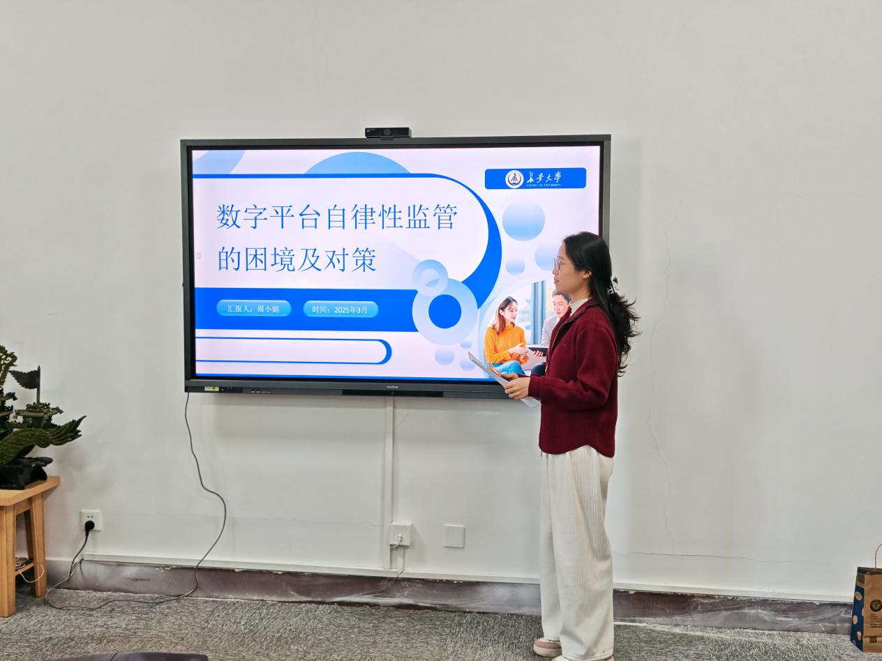 2025年3月25日上午,beats365唯一官方网站研究生“博学”学术讲座第118期在公司434学术工作坊成功举办。此次博学讲座由2022级法学专业研究生周小娟、冯延蕊主讲,分享的主题为“平台自律监管与自动驾驶算法规制的优化路径探析”,研究生指导教师刘志及相关同学参加了此次活动。