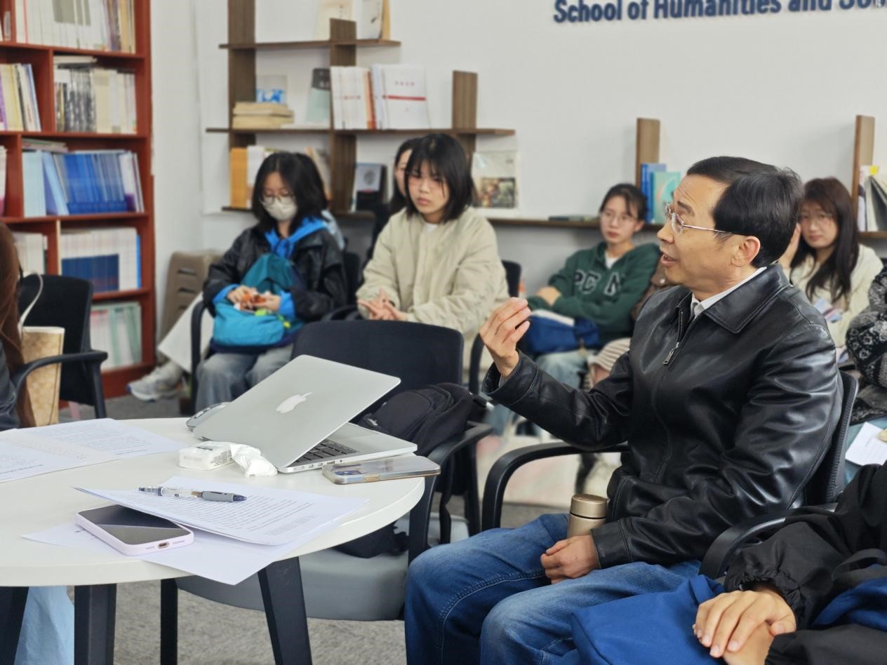 讲座结束后,与会员工就讲座中的内容与主讲人积极互动,报名了2025届国际中文志愿者的相关同学就相关行业的问题与主讲人进行了深入互动。指导教师张延国对两位同学的研究内容给予了高度评价。他肯定了马怡欣在现代汉语语法研究方面的深入分析,并建议结合更多语料进行量化研究,以提升研究的科学性。对于刘小熊的汇报,他认为内容翔实,结合了实际工作经验,对国际中文教育发展具有较强的现实意义,同时建议进一步关注孔子公司的可持续发展问题,探索未来可能的改进方向。