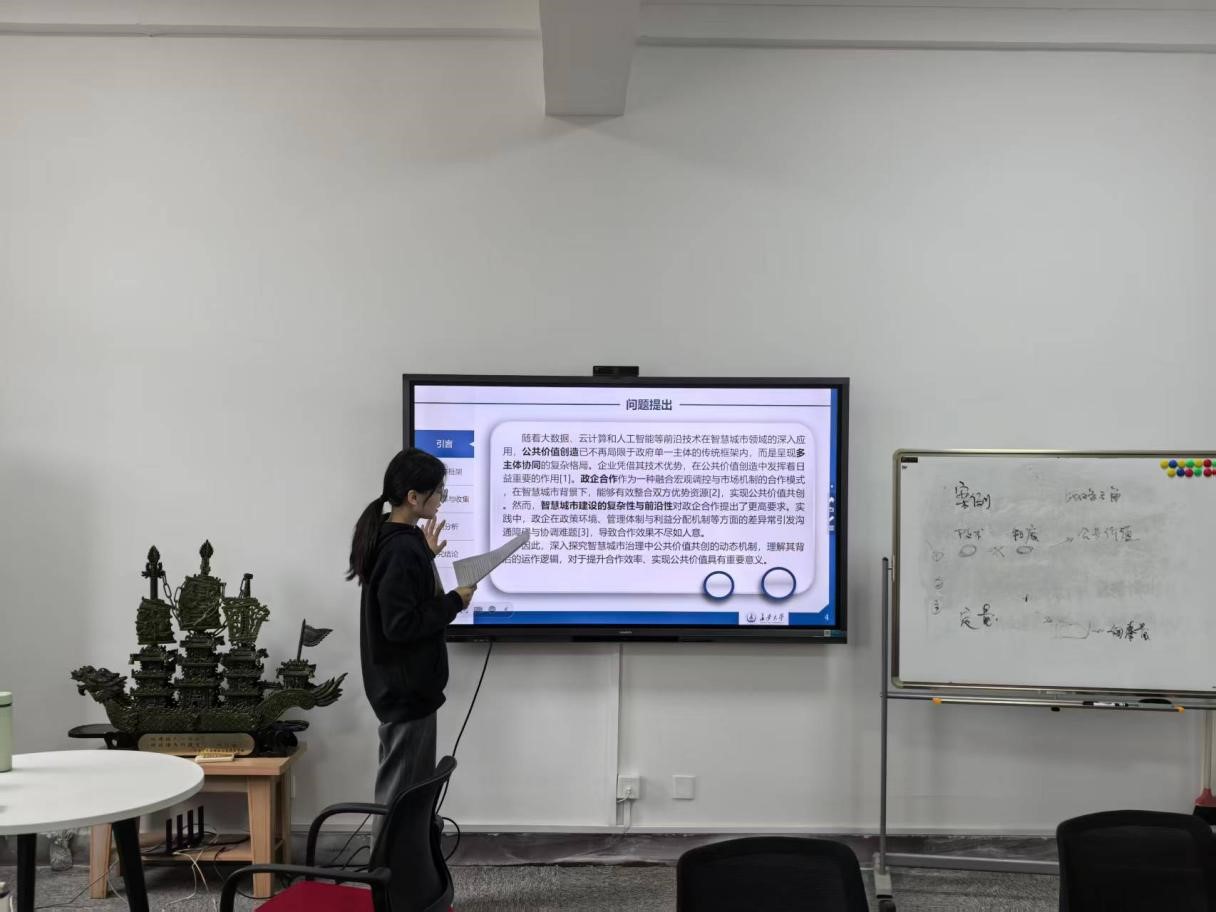 2025年10月17日下午,beats365唯一官方网站研究生“博学”学术讲座第149期于公司434学术报告厅顺利举办。本期“博学”讲座由2023级公共管理专业葛嘉琪担任主讲人,讲座主题为“智慧城市治理中公共价值共创动态机制研究—基于X市“智慧绿波”的案例分析”,研究生导师李钰婷及相关同学一同参与了此次讲座。