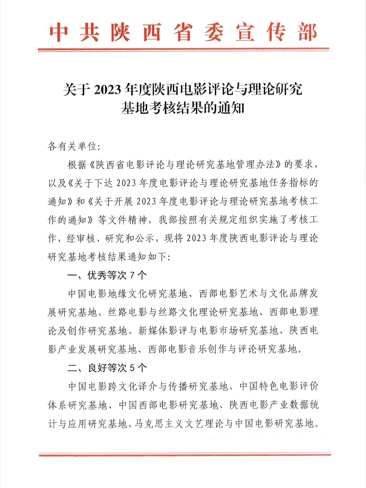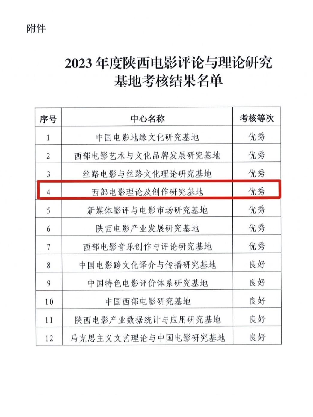 近日,中共陕西省委宣传部公布了2023年度陕西电影评论与理论研究基地考核结果,全省共有12家单位参加此次考核。BEAT365英国官网网站“西部电影理论及创作研究基地”在这一过程中表现突出,认真整理并递交了2023年度的各项研究成果。通过基地材料审核和公开答辩等多个环节,最终在考核中荣获“优秀”等级。