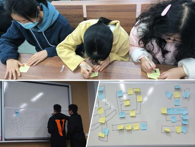 最后,同学们在便利贴上写下对未来的计划和期许,并贴在白板上的“担当”二字上,凝聚了全体团员及青年的青春力量。