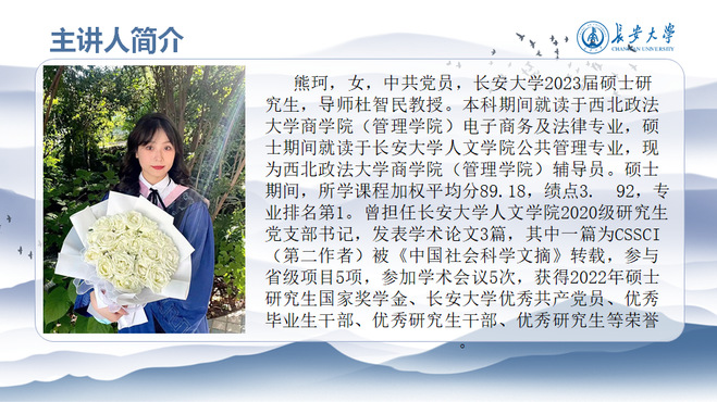 熊珂目前就职于西北政法大学商公司(管理公司)。分享会上,她首先分享了自身的辅导员备考经验,详细讲述了自己的求职过程,并就报考公司选择及备考重点提出了建议。之后,她又介绍了辅导员招聘流程,向参会同学分享了简历模板,并着重分析了笔试题型和考察内容。此后,她介绍了自己的辅导员报考经历,并结合西安各所高校2023年的笔试考情,分析了辅导员考试的题目类型。她提议同学们多关注身边的人和事,在帮助他人成长的过程中了解辅导员工作的意义和价值。分享会最后,熊珂告诫备考员工要熟悉政策要点、关注时事热点、留意“高校人才招聘网”“辅导员招聘”等公众号上的招聘信息。