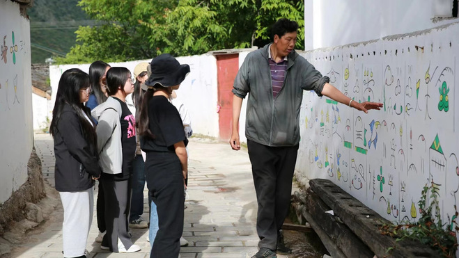 为了响应国家推普助力乡村振兴的号召,7月9日,best365英国在线体育官网“推普入白地,共‘普’民族情”团队前往云南省香格里拉市白地村进行推普实践活动。进入白地村,在纳西东巴祭祀活动、东巴舞项目州级非物质文化遗产代表性传承人和树昆的带领下,9名实践队员初步了解纳西族文化和当地普通话使用情况。