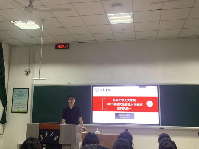 9月11日晚,2023级研究生新生入学教育第一讲暨校院员工工作政策文件学习宣传会在南校区北院b303教室顺利举行。本次活动由研究生辅导员李贤主讲,全体2023级研究生新生参与了本次活动。