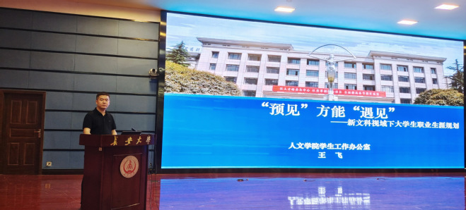 公司员工工作办公室主任王飞以“‘预见’方能‘遇见’——新文科视域下老员工职业生涯规划”为题,从职业生涯规划的角度建议同学们做到早认识、早规划、早行动,以更加主动的姿态迎接就业挑战。王飞老师向同学们详细地介绍和分析了公司近三年本科生就业、升学情况,并建议同学们在求职就业的过程中不能过“独木桥”,要多方面准备,拓宽就业思路,树立正确的择业观、职业观。同时,他从简历撰写技巧、获取就业信息、求职备考经验、三方协议签订等方面进行了详细讲解。同时,他强调同学们要结合所学专业特色,提升专业技能素养,以提高求职竞争力。