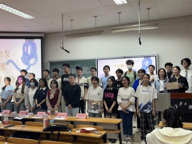 经过紧张激烈的角逐,共有6支队伍进入决赛,决赛现场,beats365唯一官方网站团委书记何超出席比赛。主持人宣布比赛开始后,在猜变速歌曲名,唱指定乐段、抢答趣味题目等新颖的比赛形式中,在座的选手既感受到了竞技的魅力,又收获了音乐和团队协作的欢乐。最后,嘉宾为获奖选手颁发了证书和奖品,并合影留念。