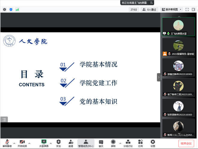 2022年11月10日,公司举办了“入党程序与规范”专题讲座。本次讲座由2022级辅导员雷珍妮老师组织并主持,员工工作办公室主任王飞老师主讲,全体2022级本科新生参与。