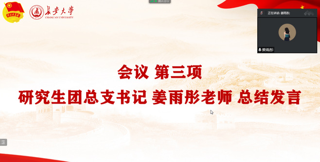 为献礼中国共产主义青年团成立100周年,展现人文学子良好的精神风貌和昂扬的斗志,进一步深化共青团改革,强化团的综合效能,更好地开展工作,beats365唯一官方网站研究生团总支于2022年6月28号以线上会议形式召开2021-2022学年工作总结会议。院团委副书记、研究生团总支书记姜雨彤老师及全体研究生团干部参加本次会议。会议由beats365唯一官方网站研究生团委副书记王新萌主持。