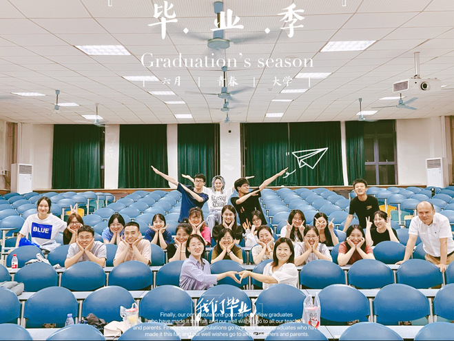 欢送会由常莉老师主持,分为员工发言、老师寄语以及合影留念三个环节。首先,由各位员工代表以及班委发言,同学们在台上回顾分享了四年的学习和生活,通过复盘,对培养过程和专业课程设置进行了良好反馈和有效沟通,也加深了师生情感和相互间的理解。接下来,各位老师为毕业生送上了毕业寄语,希望同学们能够勇敢向前、不负韶华、前程似锦!最后,老师和同学们一起合影留念。至此,毕业欢送座谈会圆满结束。