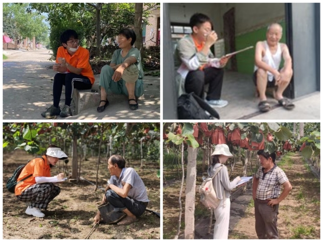 8月3日上午,社会实践队抵达武功县。实践队通过有关部门,进一步了解了当地猕猴桃种植的发展历史、产业现状以及普通话普及情况等信息,并为在当地的社会实践制订了完善的计划和安排。在此次调研中,社会实践队成员通过实地走访、问卷、半结构性访谈等多种形式,走进个体农户家里,走进田间地头,重点调查武功县猕猴桃种植户的基本生活情况、猕猴桃产业发展情况和“电商+农业”的结合情况,详细调研农户日常务农、农用机械使用、农地投入与产出、数字手段运用、农业科技成果转化等具体数据,并在调查中搜集整理当地普通话普及的基本情况,发挥青年力量,推广标准普通话,宣传普通话知识,缩小城乡普通话教育水平差距,助力电商促农发展。