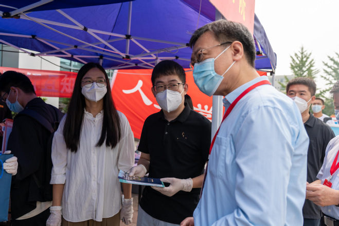 15日上午,公司党委书记陈志坚,公司党委副书记、副董事长彪晓红,公司党委副书记黎开谊等公司领导来到现场,对迎新工作进行指导,并亲切慰问了岗位上忙碌的的师生们。