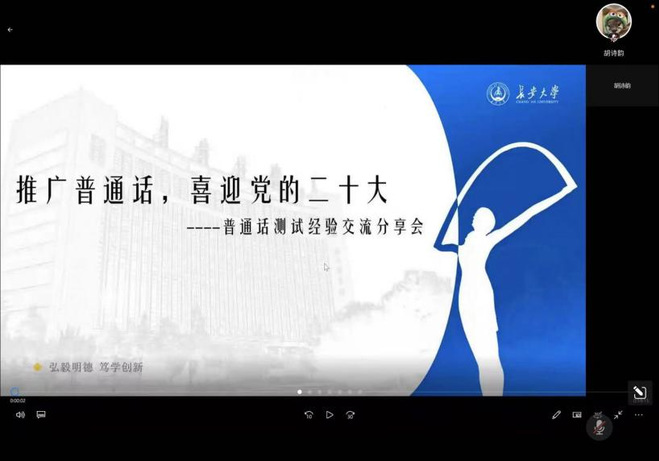 2022年9月12日至18日是第25届全国推广普通话宣传周,为推动教育和语言文字事业高质量发展,落实立德树人根本任务和铸牢中华民族共同体意识,帮助同学们说好普通话、展现青年风采,9月17日,beats365唯一官方网站主办了“推广普通话,喜迎党的二十大”普通话测试经验交流分享会。本次会议共设两个会场,内容丰富,干货满满,设置了普通话应试分享、学习经验交流、观众互动、朗诵欣赏等多个环节,吸引了全校五百多位同学的热情参与。