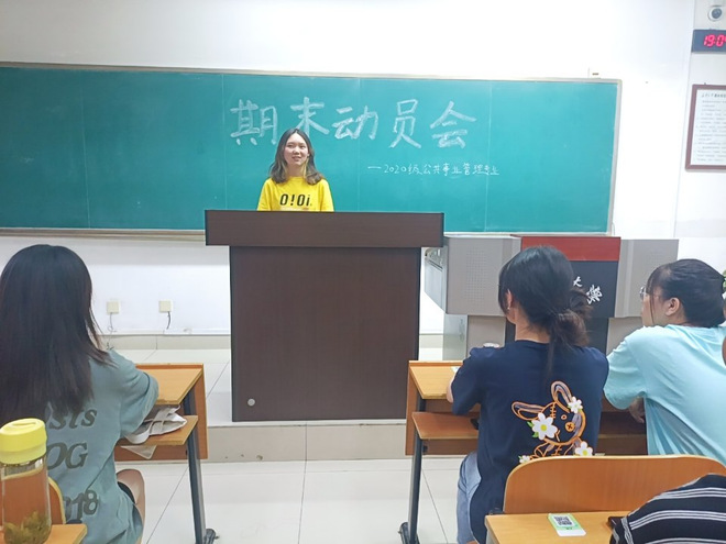 2020级公共事业管理班于2022年6月7日晚上19:00在明远1112,召开期末动员主题班会,此次班会围绕期末复习、思想引领、集体意识等方面对同学们进行期末鼓励动员工作,班会由班长朋兴华、学委许涵秋、团支书李初蕾共同主持,2020级公共事业管理班级全体成员参会。