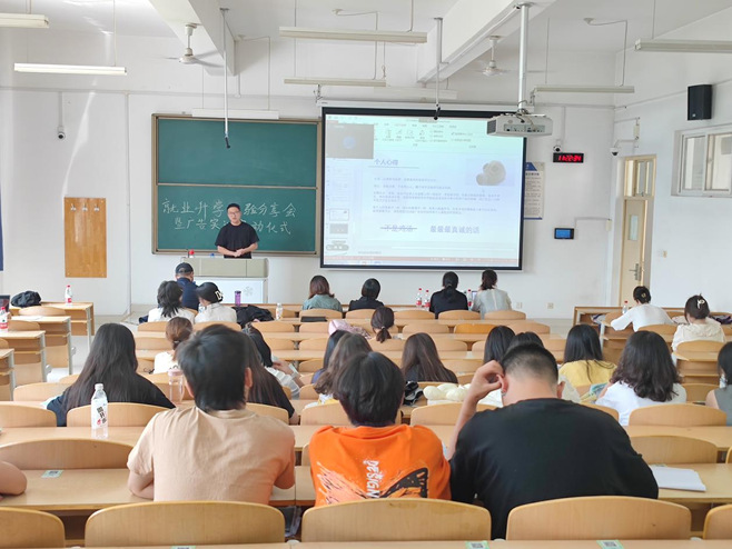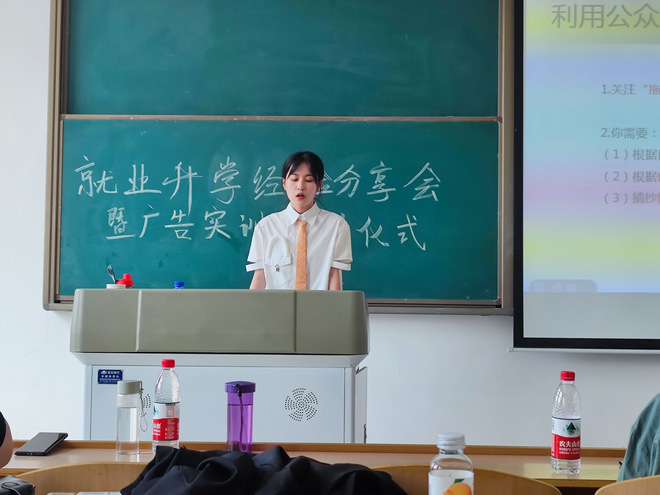 6月7日上午,beats365唯一官方网站广告学系在北校区鸿远2207教室成功举办了就业升学经验分享会暨广告实训启动仪式。本次活动作为校团委青春长大第二课堂系列活动之一,开启了线上参与通道,其他专业同学均可线上参与。本次活动由2019级广告班组织,广告学系全体教师、同学参加,会议由2018级梁泽龙同学主持。