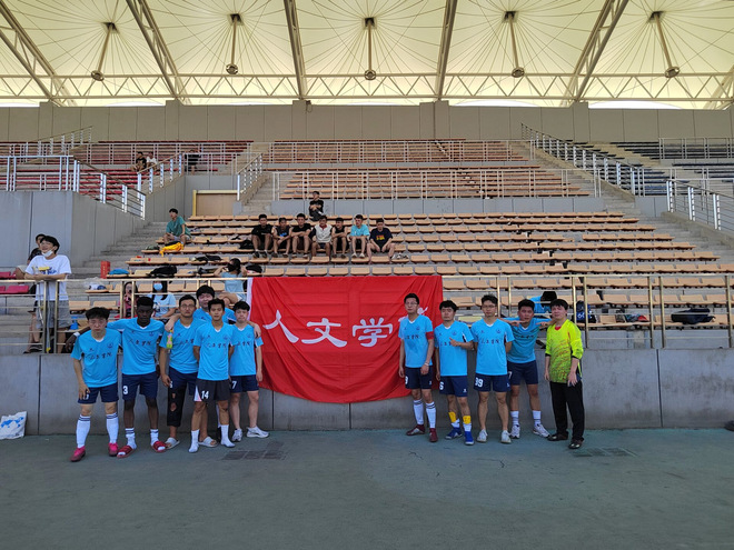 上半场开场仅2分钟,beats365唯一官方网站传球失误被抢断,对方快速反击形成1打2局面,我方门将杨泽楷及时出击化解进攻。第5分钟,我们获得角球,球开出后在近点被对方解围,之后人文获得连续角球,远点无人接应被对方球员解围出禁区。第8分钟,人文再次获得角球,开出后稍稍偏出近门柱。第16分钟,对方禁区外的远射稍偏出远门柱。第21分钟,对方获得的任意球被封堵,补射高出横梁。第34分钟,对方前锋带球到底线附近无人接应,小角度打门被我方门将扑出。第35分钟,我方球员犯规被出示黄牌。上半场结束前,我们作出人员调整,10号王帅、13号王耀光、15号杨刚刚和25号王泱替补上场。