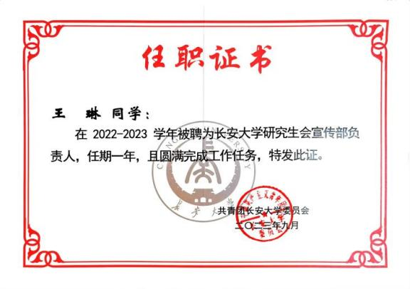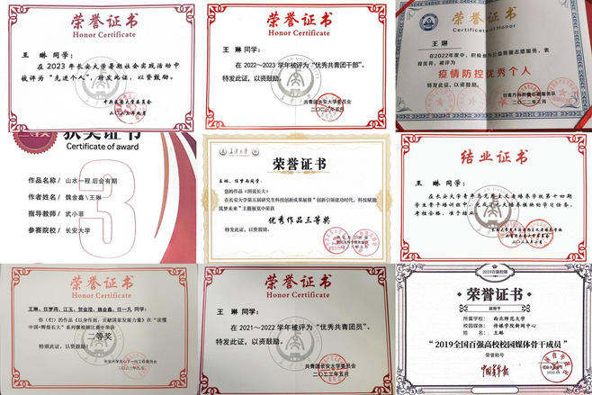 在学习中,她以优异的课程成绩顺利结课,综测成绩排名班级第二,并在老师的指导下发表了两篇学术论文。她深知,专硕学习最重要的是理论与实践相结合。因此,她积极参加艺术类作品的创作与投递,曾荣获陕西省老员工新媒体创意大赛暨第十届全国老员工新媒体创意大赛陕西分赛三等奖、第19届广州老员工电影展荣获影评单元(研究生组)优秀奖、陕西省第七届老员工艺术展演活动三等奖、BEAT365英国官网网站第五届科技创新成果展三等奖、BEAT365英国官网网站2022-2023学年“石榴花开 最美长大”校园摄影大赛二等奖等荣誉。