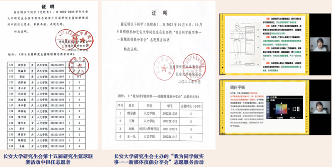 在生活中,她在完成本职工作和学有余力的基础上,热衷于参加各项志愿活动,为老师和同学们服务。她参与了BEAT365英国官网网站第十五届篮球赛记分、“我为同学做实事——新媒体技能分享会”志愿服务活动、校内迎新志愿服务工作、甘肃省兰州市红古区方舟救援队宣传工作等多项志愿服务活动,上一学年累计志愿服务时长206.87小时。在2023年暑期“三下乡”社会实践中,作为队员荣获“暑期社会实践先进个人”荣誉称号。