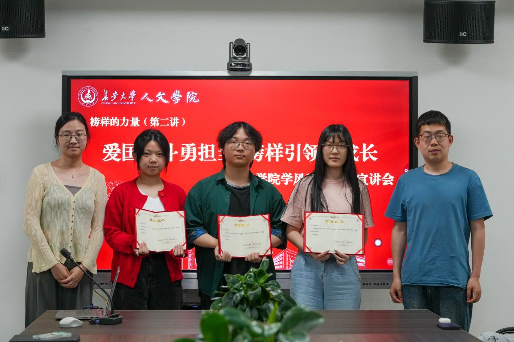 宣讲会结束后,何超、雷珍妮为三名宣讲团成员颁发留念证书。