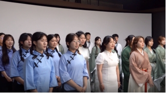 公司学子牢牢把握人文特色,选择以“源远流长千年韵,书香氤氲满校园”为主题进行创作,将流行演唱、书法、舞蹈、武术与情景式朗诵相融合,以古今对话的形式为特点,在原稿件《先人与我们同行》的基础上进行改编创作。