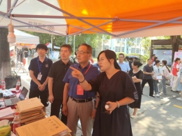 8月28日,校院两级党政领导来到现场,对迎新工作进行指导,并亲切慰问了岗位上忙碌的师生们。
