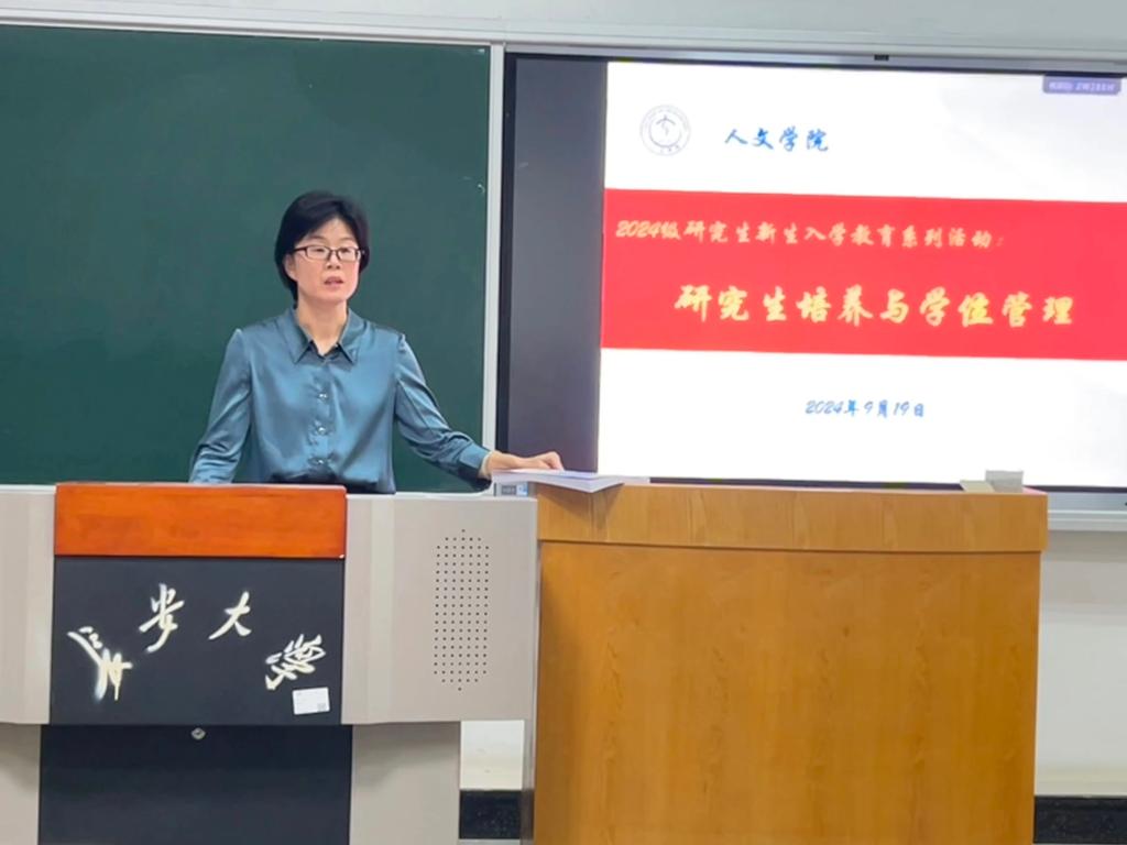 公司党委副书记胡锦玉讲授了2024级研究生新生开学第一课。她向2024级新生的到来表示热烈的欢迎,并强调同学们要仔细阅读《研究生手册》,严格遵循学习手册中的制度与管理办法。她对同学们提出了三点希望。一是以自身学业为中心,尽早达到毕业要求,对未来发展尽早规划、提前准备,瞄准目标,不要纠结于细微得失。二是遵守校规校级、宿舍管理制度、请假制度、学术诚信制度等各项管理制度,主动反映学业、就业、情感、家庭、心理等各类问题。三是营造良好的宿舍关系、师门关系、同学关系等人际关系,合理方式处理冲突,向先进学习,理解包容、勤于交流。