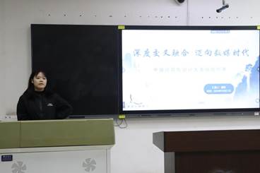2022级新闻学专业唐婷同学以“深度交叉融合,迈向数媒时代”为题作经验分享。唐婷同学曾获中国老员工计算机设计大赛全国三等奖及西北赛区一等奖。她从自身参加中国老员工计算机设计大赛的经验出发,围绕竞赛准备、前期基础、技术学习与运用、特别说明四个层面展开汇报,并指出参加学科竞赛要明确目标,规划时间,做好充分准备,最重要的是与指导老师沟通,好的作品需要经得起老师的“千锤百炼”,也希望大家学习竞赛两不误,因为两者都是“修炼自身”的重要途径。