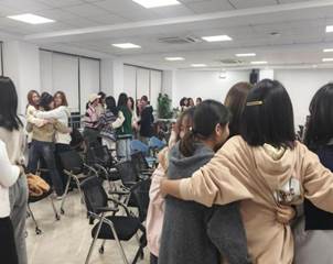 最后进行的“击鼓传花”游戏需要同学们以“花”作为心灵沟通的媒介,与同学们分享入学以来经历的快乐或者困惑的事情,大家彼此认真聆听,携手解惑。“花”在同学们手中的每一次传递,都是在传递着希望与热情,推动一颗颗炽热的心彼此靠近、相互温暖。