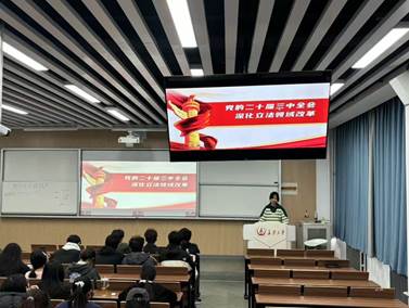 党的二十届三中全会通过的《中共中央关于进一步全面深化改革、推进中国式现代化的决定》从深化立法领域改革等方面,明确了完善中国特色社会主义法治体系的重点任务。身为法学专业学子,2024级法学班团支部于12月3日开展主题团日活动,深入学习贯彻党的二十届三中全会精神。活动由团支部书记刘可儿主持。