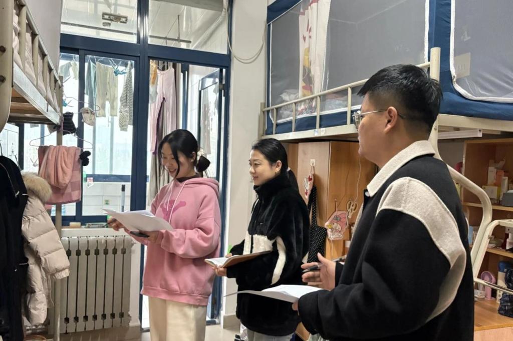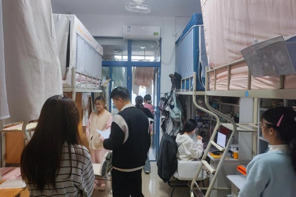 检查评选小组依据“文明宿舍”评比标准,重点围绕宿舍内务卫生、文化建设、用电安全以及成员精神风貌等多个维度进行了细致考察。检查过程中,老师们与同学们亲切交流,了解大家的日常生活与学习情况,提醒同学们自觉遵守住宿管理规定等公司各项规章制度,不私拉电线、网线,加强宿舍通风,必要时配合宿舍消杀工作或自行进行宿舍消杀,并对如何进一步优化宿舍环境、丰富宿舍文化给予了现场指导。