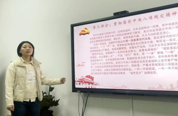 beats365唯一官方网站研究生第三党支部宣传委员马俊鸿围绕“中央八项规定精神”主题,从党风问题关系党的生死存亡、以自我革命精神加强作风建设以及贯彻落实中央八项规定精神三方面重温了大课核心内容,带领全体党员进行了系统学习。大家深刻认识到,要以钉钉子精神常抓不懈,从一件件小事做起,在一个个细节上严格把关,推动作风建设落地生根、成为常态。