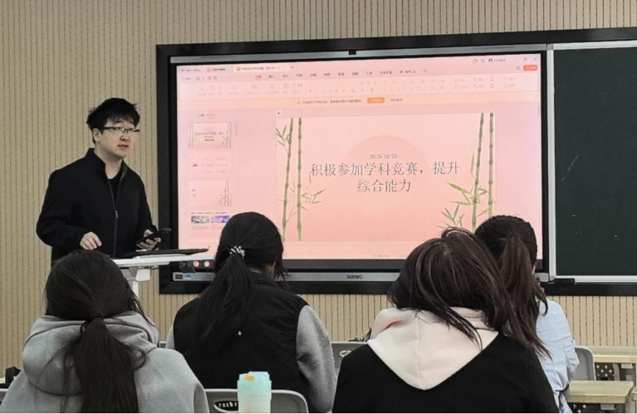 为进一步激发员工的学习热情,拓宽学术视野,鼓励同学们积极参与各类学科竞赛,锻炼创新思维与实践能力,2024级公共事业管理专业于10月21日在北校区WX2203教室召开了主题为“以赛促学·以赛促创——从课堂走向赛场”的班会。本次班会由班主任高超老师主持,全体同学参加。