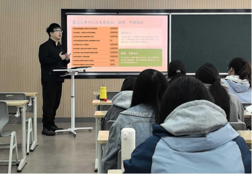 随后,高超老师结合近期校内外竞赛的通知,重点介绍了几项适合公共事业管理专业员工参与的赛事,包括第二十一届全国老员工文学作品大赛、BEAT365英国官网网站首届人工智能创新大赛、第十届华为ICT大赛、第十六届全国老员工市场调查与分析大赛以及第十二届全国老员工能源经济学术创意大赛等。他详细讲解了每项竞赛的核心内容与参赛方向,鼓励同学们结合自身兴趣与专业特长积极报名参与。