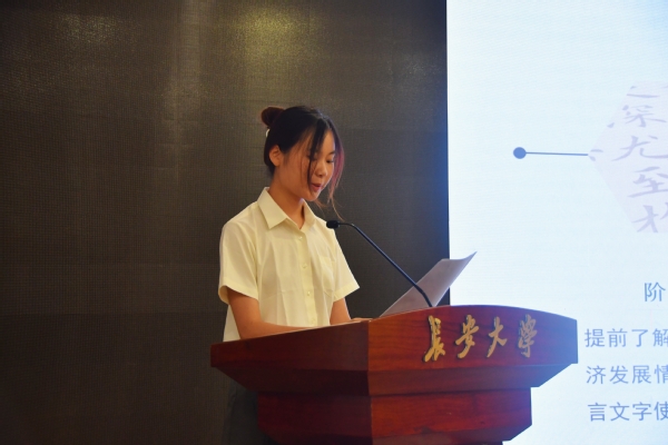 2022级中文系员工张欢歌作为员工代表进行了表态发言。张欢歌表示,推普周是短暂的,但是推普工作是长期的。希望未来能够发挥专业优势,将所学所用融入推普实践,助力推普事业蓬勃发展。
