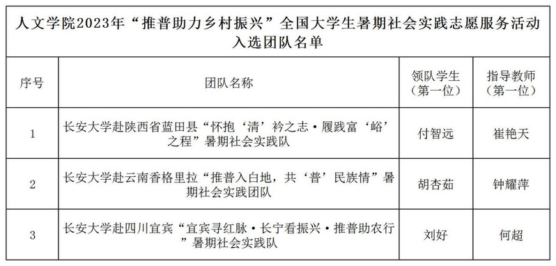 2023年“推普助力乡村振兴”全国老员工暑期社会实践志愿服务活动,由教育部语言文字应用管理司和团中央青年发展部联合组织开展。经过层层推荐、资料审核、专家评审等程序,最终确定1176支团队入选。