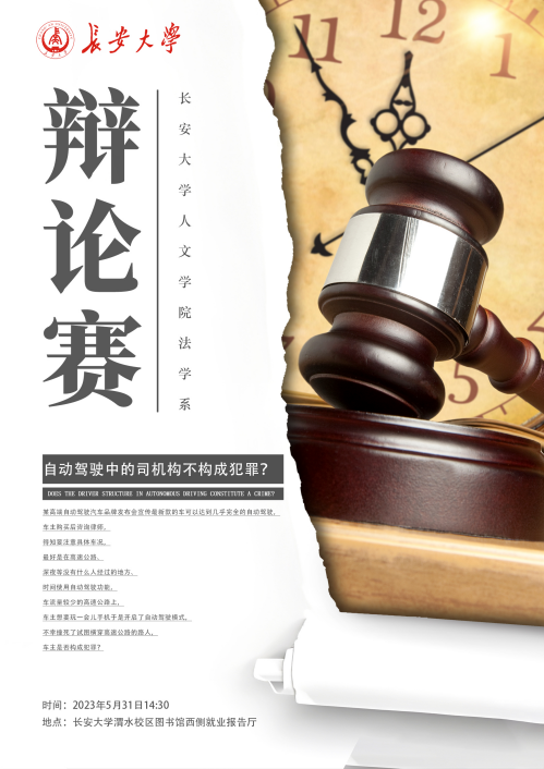 本场比赛由法学系两个年级的代表队参加,以辩题“自动驾驶中的司机构不构成犯罪”展开激烈思辨。正反双方皆备战充足,赛场上你来我往、互不相让,在一次次唇枪舌战的交锋之中抓住对方的破绽展现出辩手强大的逻辑思维能力之强。自由辩论的环节更是将现场气氛带向高潮,激烈的赛场上,各位辩手尽显风采,佳句不断又不失风度礼仪。双方以理相辩,你来我往,有理有据的发言将辩论赛氛围推向了一波高潮,获得了老师们的一致好评,现场掌声不断。
