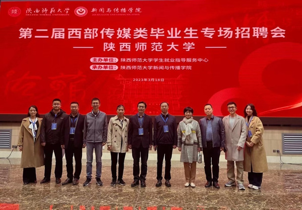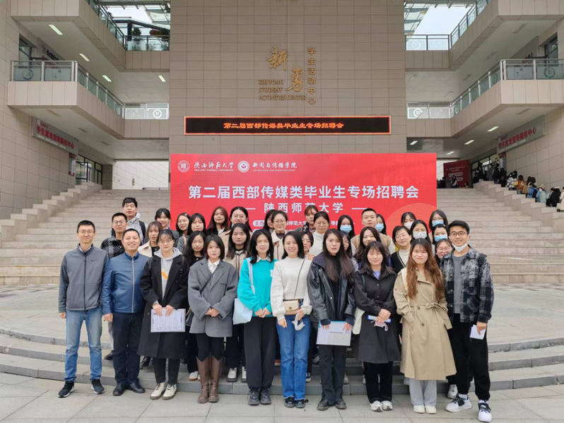 应主办方陕西师范大学新闻与传播公司邀请,公司党委副书记王东、副经理杜波,新闻系教师张娜、苏蕾,毕业班辅导员李贤、王亚杰,以及公司部分研究生和本科毕业生参加了本次专场招聘活动。