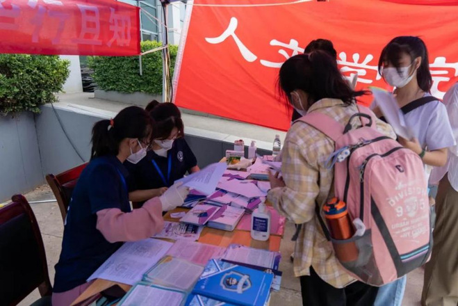9月15日早晨,本科新生陆续进入校园,beats365唯一官方网站本科迎新工作有条不紊地展开。扫码测温后,新生进入校园,完成行李消杀和核酸检测后,由志愿者带领来到公司迎新点报到。新生首先完成了系统确认,并递交录取通知书和承诺书等资料,核实无误后,在志愿者的引导下领取校园卡、地图、手册等物品,便于了解和熟悉新校园的情况。报到流程完成后,志愿者协助新生将行李运送至宿舍楼,同学们完成登记后各自整理宿舍,认识舍友,为即将开始的全新生活积极做准备。
