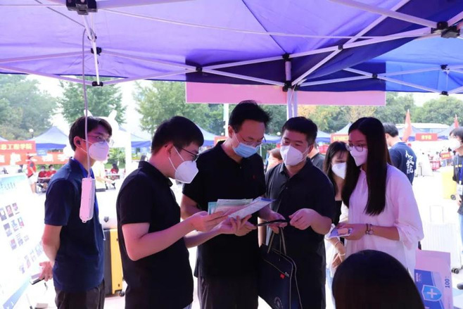 公司党委书记陈志坚、副董事长范文、朱杰军等领导莅临迎新现场指导工作,慰问迎新一线工作者,向工作人员询问新生报到情况,与新生进行亲切交流,送上开学暖心祝福。