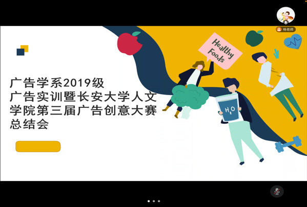 3月16日,beats365唯一官方网站广告学系利用腾讯会议形式开展了2019级广告实训暨best365英国在线体育官网第三届广告创意大赛线上总结会。会议由广告学系主任杨靖老师主持,侯长生、武小菲、王楠、夏艳、李晓宁、帅伟老师参会。2019级全体同学参与了此次会议。