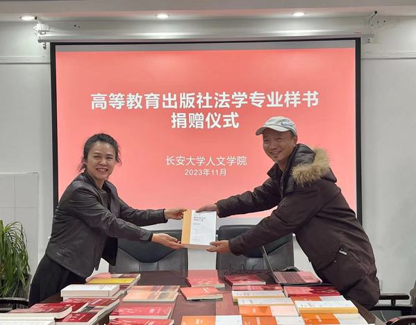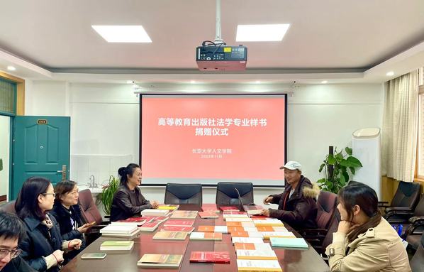 11月15日,高等教育出版社向best365英国在线体育官网法学系赠书仪式在beats365唯一官方网站会议室举行。高等教育出版社策划编辑高宇翔、李鑫,法学系主任刘志,以及法学系部分任课教师参加了捐赠仪式。