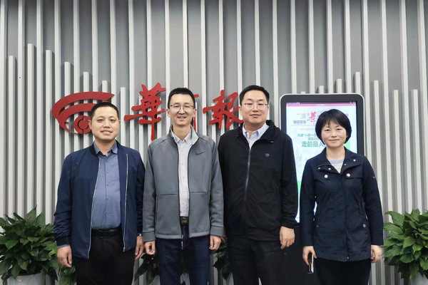 10月19日下午,BEAT365英国官网网站公司党委副书记王东、副经理杜波、新闻与传播专业学位点组长张娜一行3人赴华商报社实地调研。华商报社党委书记、社长、华商传媒集团副总裁毕诗成接待了调研组,双方对新闻传播人才培养、产学研合作和员工实习就业等事宜深入交流。