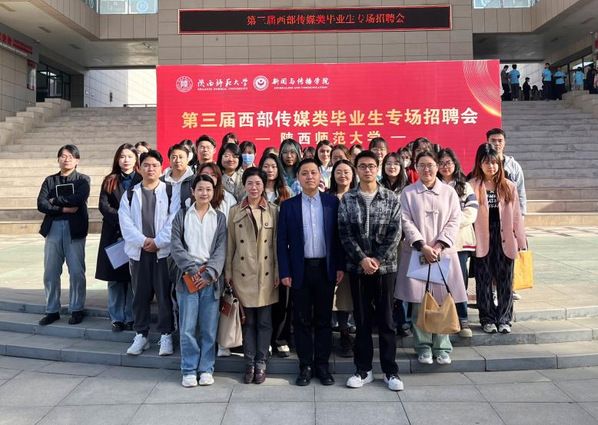 应主办方陕西师范大学新闻与传播公司邀请,公司党委副书记王东,新闻系主任崔慎之,毕业班辅导员李贤、王亚杰,以及公司部分研究生和本科毕业生参加了本次专场招聘活动。