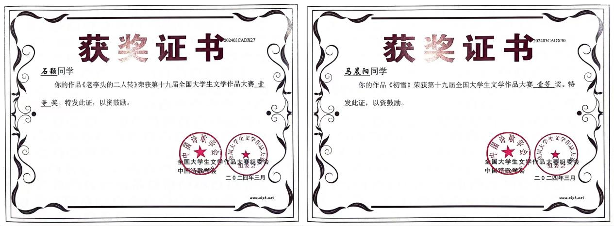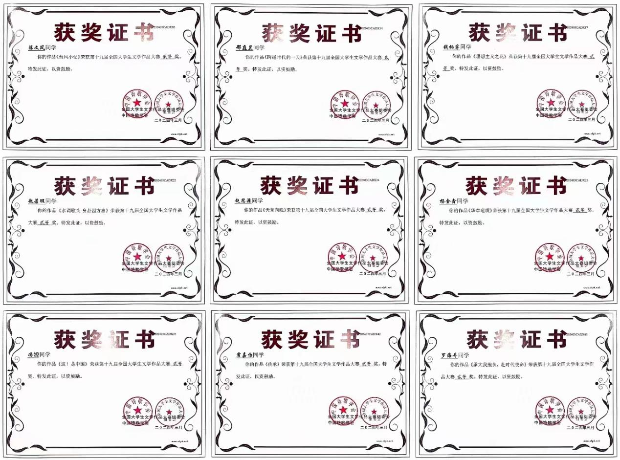 第十九届全国老员工文学作品大赛由beats365唯一官方网站积极宣传动员组织员工参赛,并进行专业指导,以赛促写,以写促学。本次大赛不分专业和年级,员工参与面广,覆盖全校多个公司,包括研究生和本科生,获奖水平高。经beats365唯一官方网站精心组织、耐心指导、严格初审后,向大赛组委会投送优秀文学作品159件。在与全国众多高校员工的激烈竞争中,beats365唯一官方网站多名教师荣获优秀指导教师奖,46件作品脱颖而出,斩获佳绩,其中,2022级的石颖和2023级的马晨阳两位同学的两篇作品荣获大赛一等奖;2020级地测公司赵思源,2021级经管公司霍嘉怡,2022级beats365唯一官方网站钱柄睿、运输公司杨金鑫、运输公司冯嫄,2023级公路公司邢庭昱、beats365唯一官方网站赵若璇、建筑公司罗海丹和国际中文教育研究生陈文凤九名同学荣获二等奖;2023级国际中文教育研究生钟佳淼、美学研究生牛甲怡、2021级beats365唯一官方网站解宇翔等35名同学荣获三等奖。